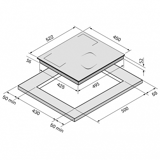 Описаниеповерхность варочная стеклокерамическая независимая индукционная, 45 см, графит