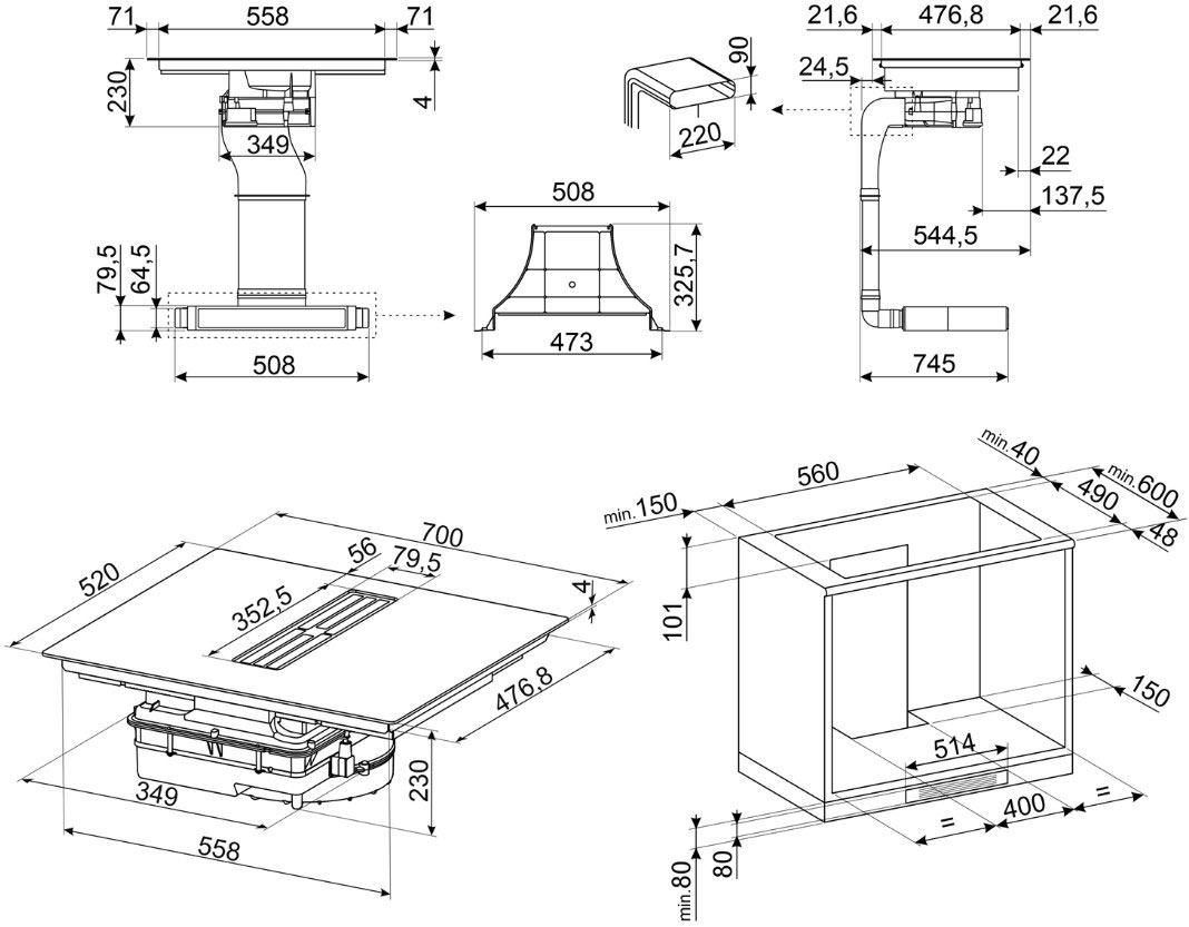 Описаниеповерхность варочная стеклокерамическая независимая индукционная с встроенной вытяжкой, 70 см, черный