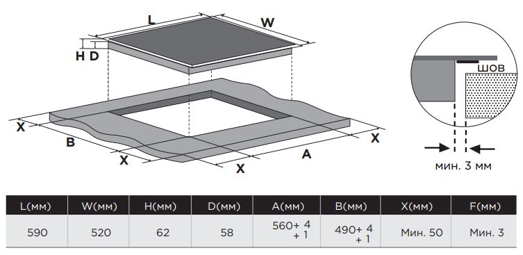 Описаниеповерхность варочная стеклокерамическая независимая индукционная, 60 см, черный, скошенный передний край
