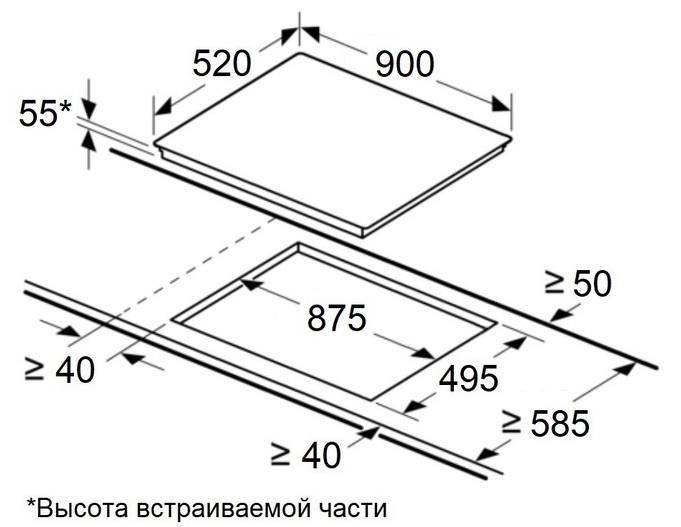 Описаниеповерхность варочная стеклокерамическая независимая индукционная, 90 см, черный, без рамки