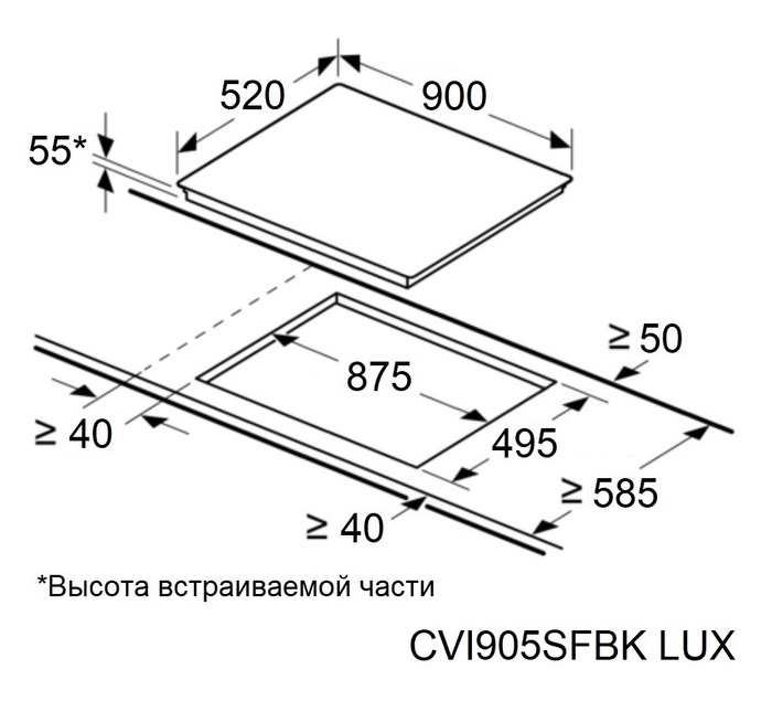 Описаниеповерхность варочная стеклокерамическая независимая индукционная, 90 см, черный, без рамки
