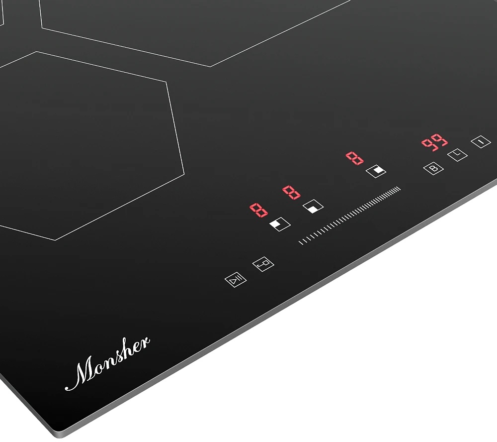 Описаниеповерхность варочная стеклокерамическая независимая индукционная, 45 см, черный, без рамки
