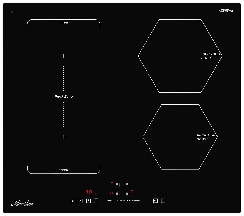 Описаниеповерхность варочная стеклокерамическая независимая индукционная, 60 см, черный, без рамки