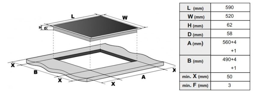 Описаниеповерхность варочная стеклокерамическая независимая индукционная, 60 см, черный, без рамки