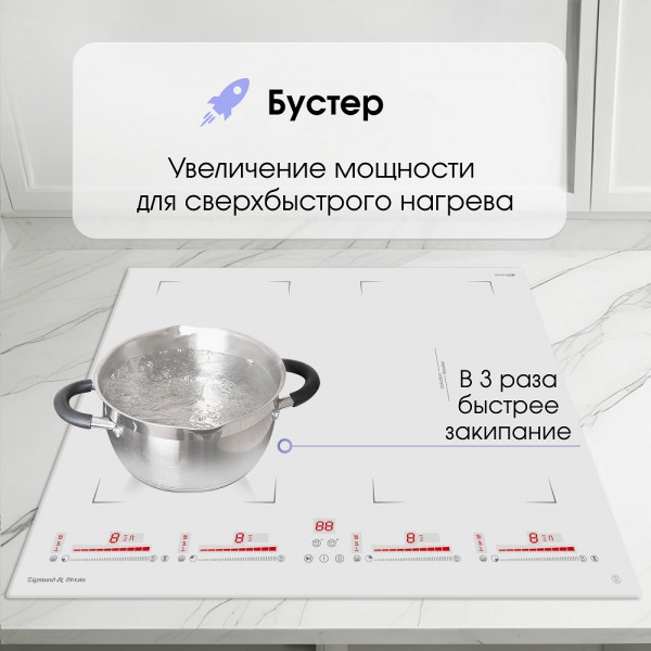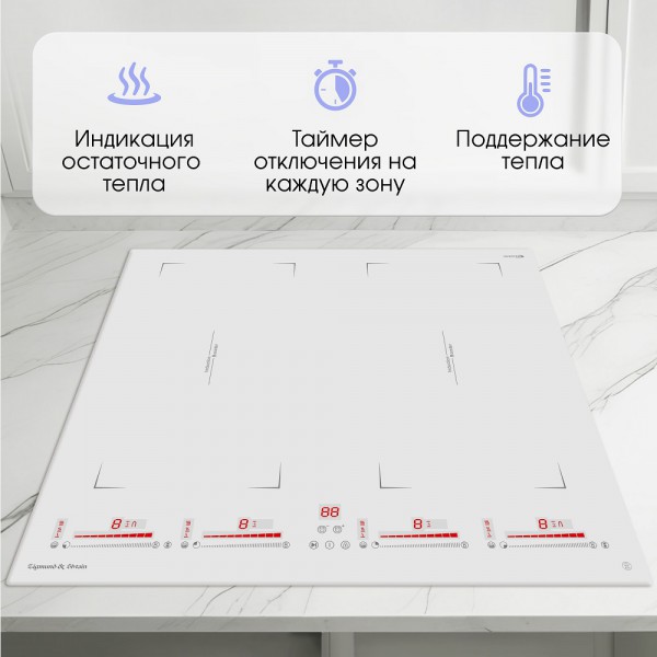 Описаниеповерхность варочная стеклокерамическая независимая индукционная, 60 см, белый