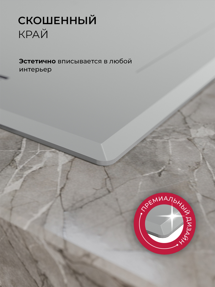 Описаниеповерхность варочная стеклокерамическая индукционная, 60 см, серый, скошенные края