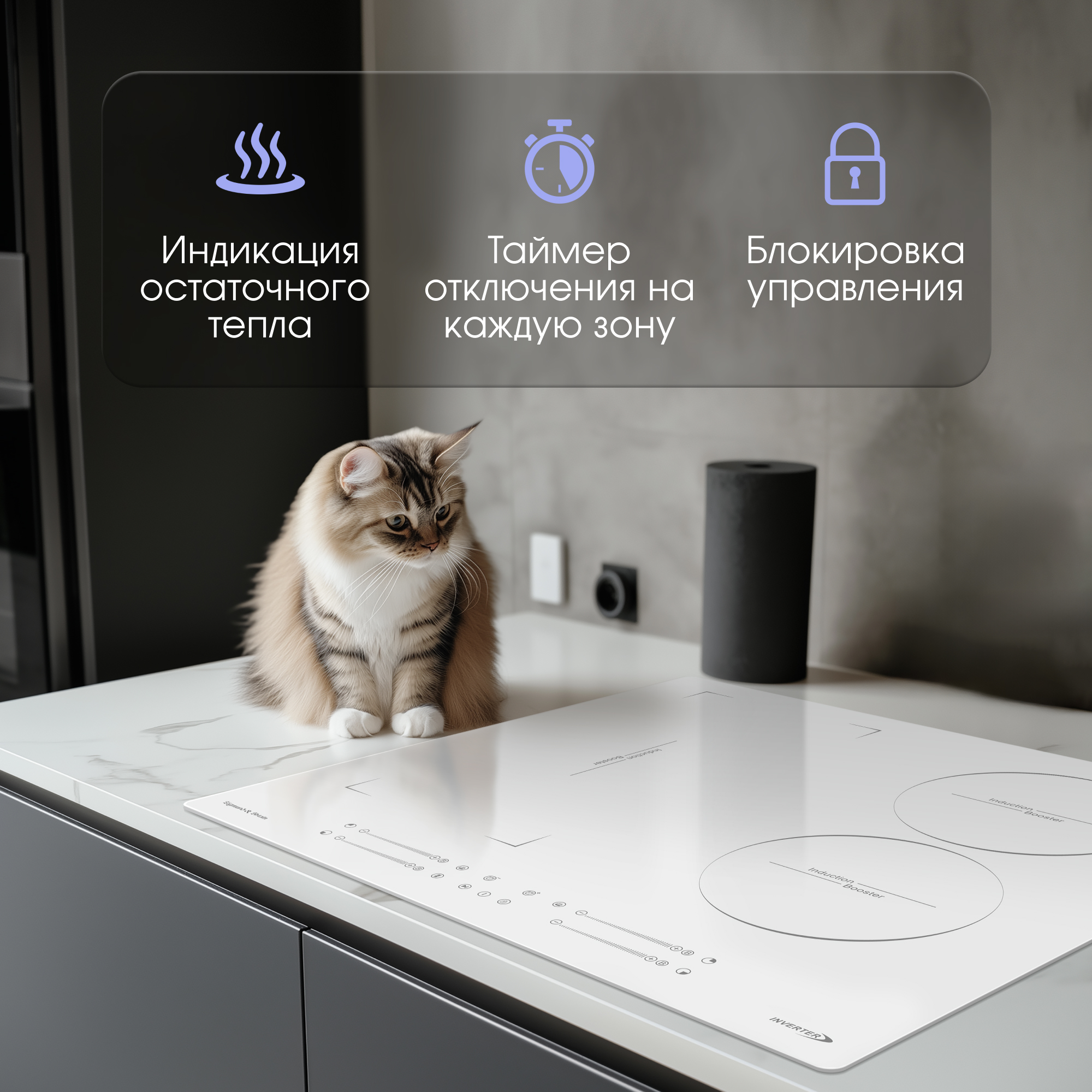 Описаниеповерхность варочная стеклокерамическая индукционная, 60 см, белый