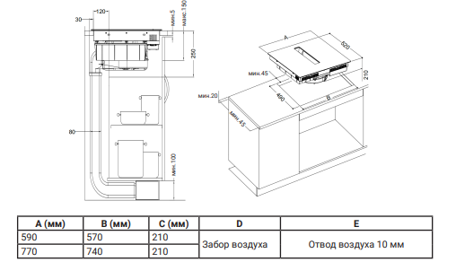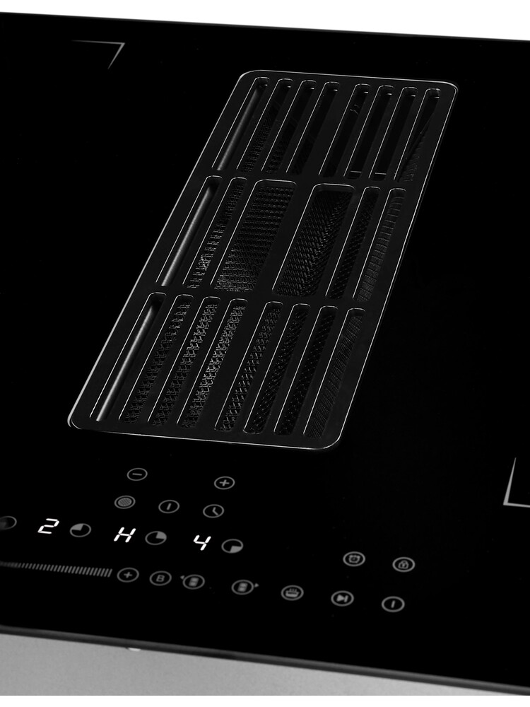 Описаниеповерхность варочная стеклокерамическая индукционная с встроенной вытяжкой, 77 см, черный