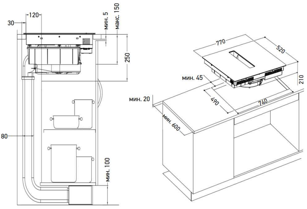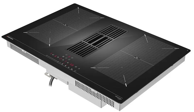 Описаниеповерхность варочная стеклокерамическая индукционная с встроенной вытяжкой, 77 см, черный