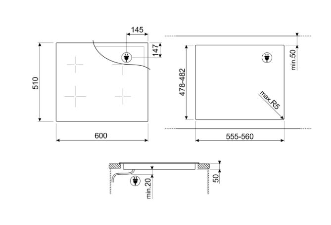 Smeg SIM3644MWH Индукционная поверхность
