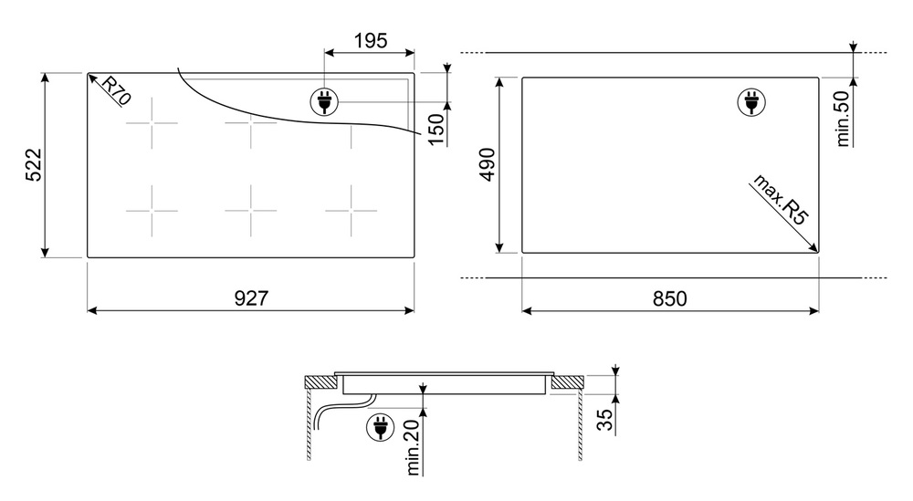 Описаниеповерхность варочная стеклокерамическая индукционная, 90 см, черный, без рамки
