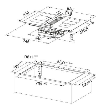 Описаниеповерхность варочная стеклокерамическая индукционная с встроенной вытяжкой, 83 см, черное стекло
