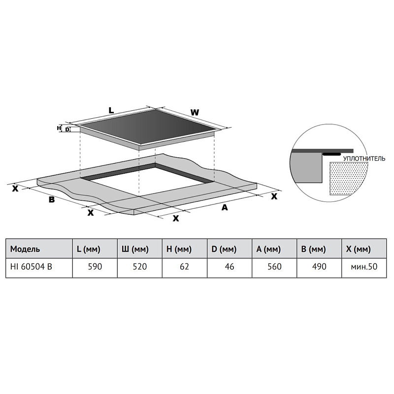Описаниеповерхность варочная стеклокерамическая индукционная, 60 см, черный, скошенные края