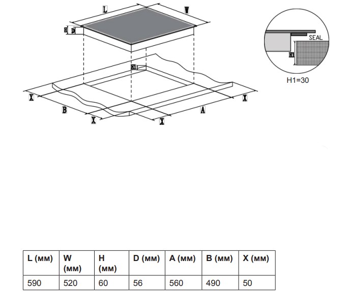 Описаниеповерхность варочная стеклокерамическая индукционная, 60 см, черный