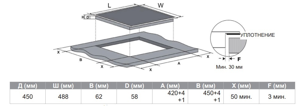 Описаниеповерхность варочная стеклокерамическая индукционная, 45 см, черный