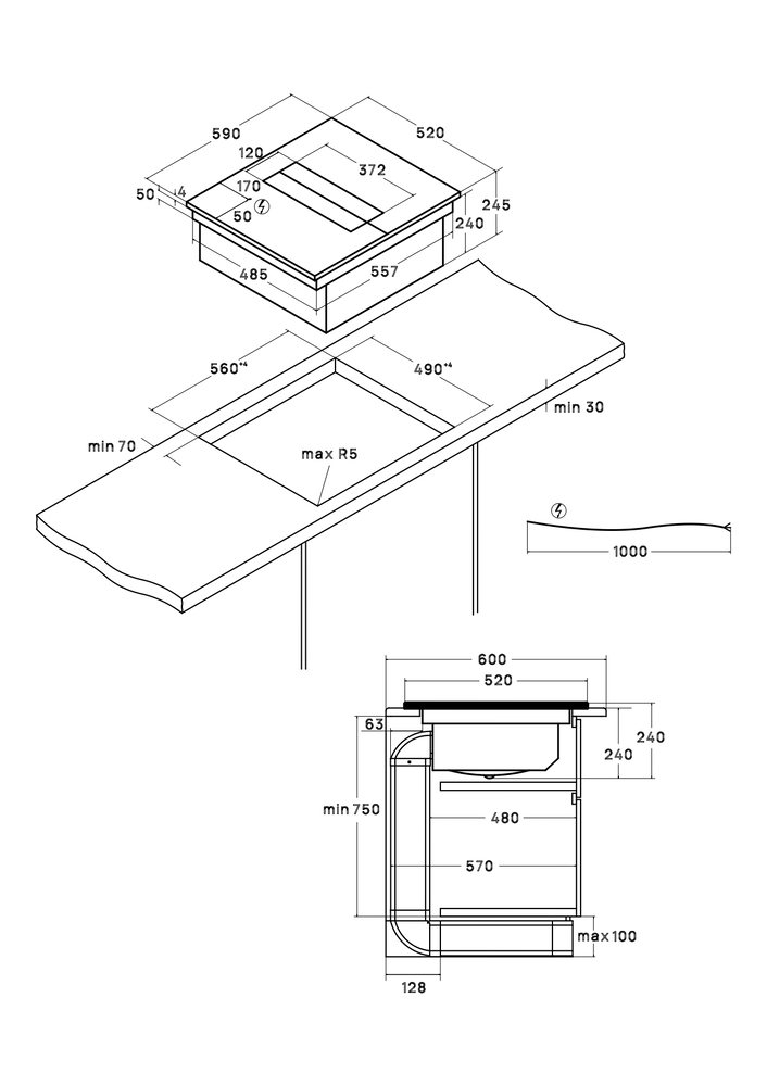 Описаниеповерхность варочная стеклокерамическая индукционная со встроенной вытяжкой, 60 см, черный
