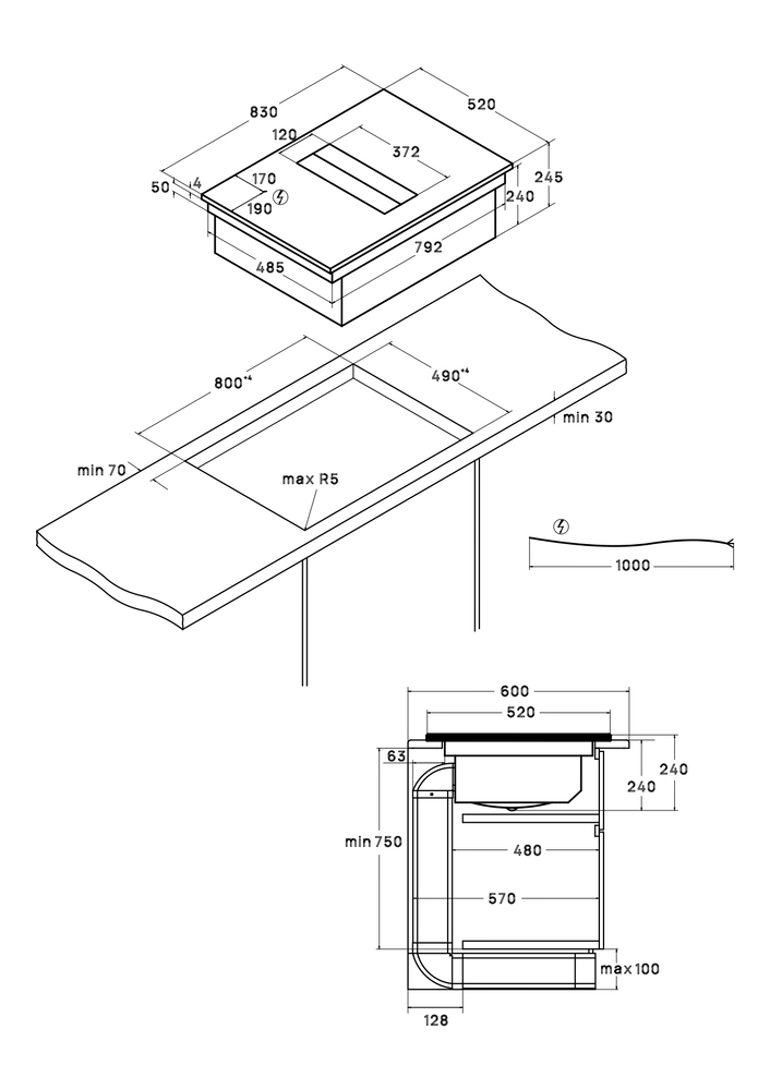 Описаниеповерхность варочная стеклокерамическая индукционная со встроенной вытяжкой, 83 см, черный