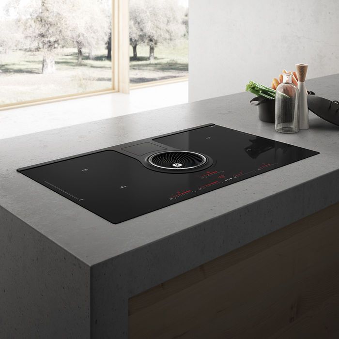 Описаниеповерхность варочная стеклокерамическая независимая индукционная с встроенной вытяжкой, 83 см, черный