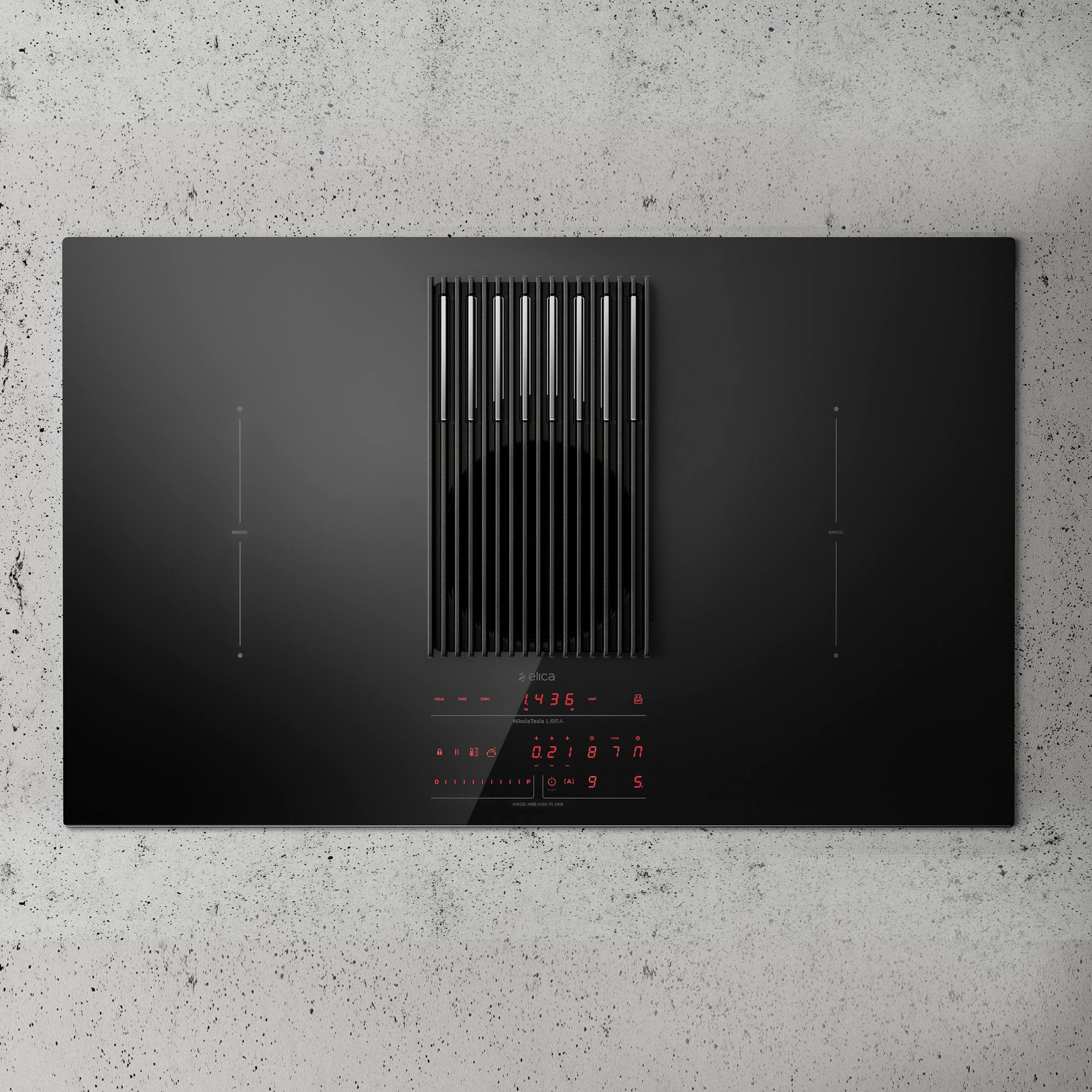 Описаниеповерхность варочная стеклокерамическая независимая индукционная с встроенной вытяжкой, 83 см, черный