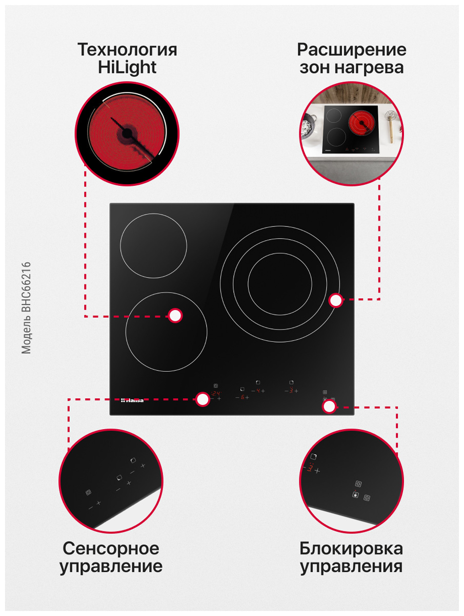 Описаниеповерхность варочная стеклокерамическая независимая, 60 см, черный
