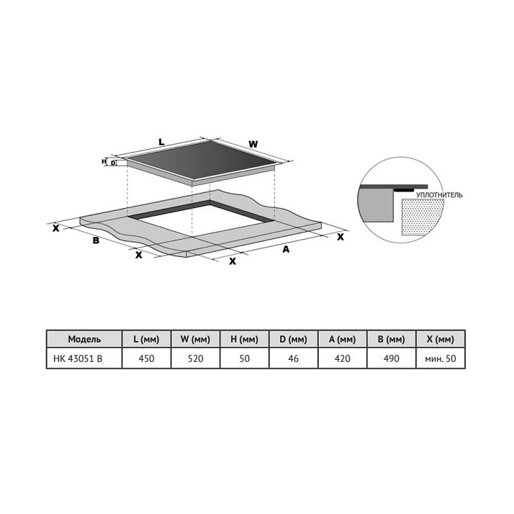 Описаниеповерхность варочная стеклокерамическая независимая, 45 см, черный, скошенные боковые края