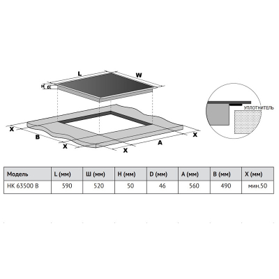 Описаниеповерхность варочная стеклокерамическая независимая, 60 см, черный, скошенные края