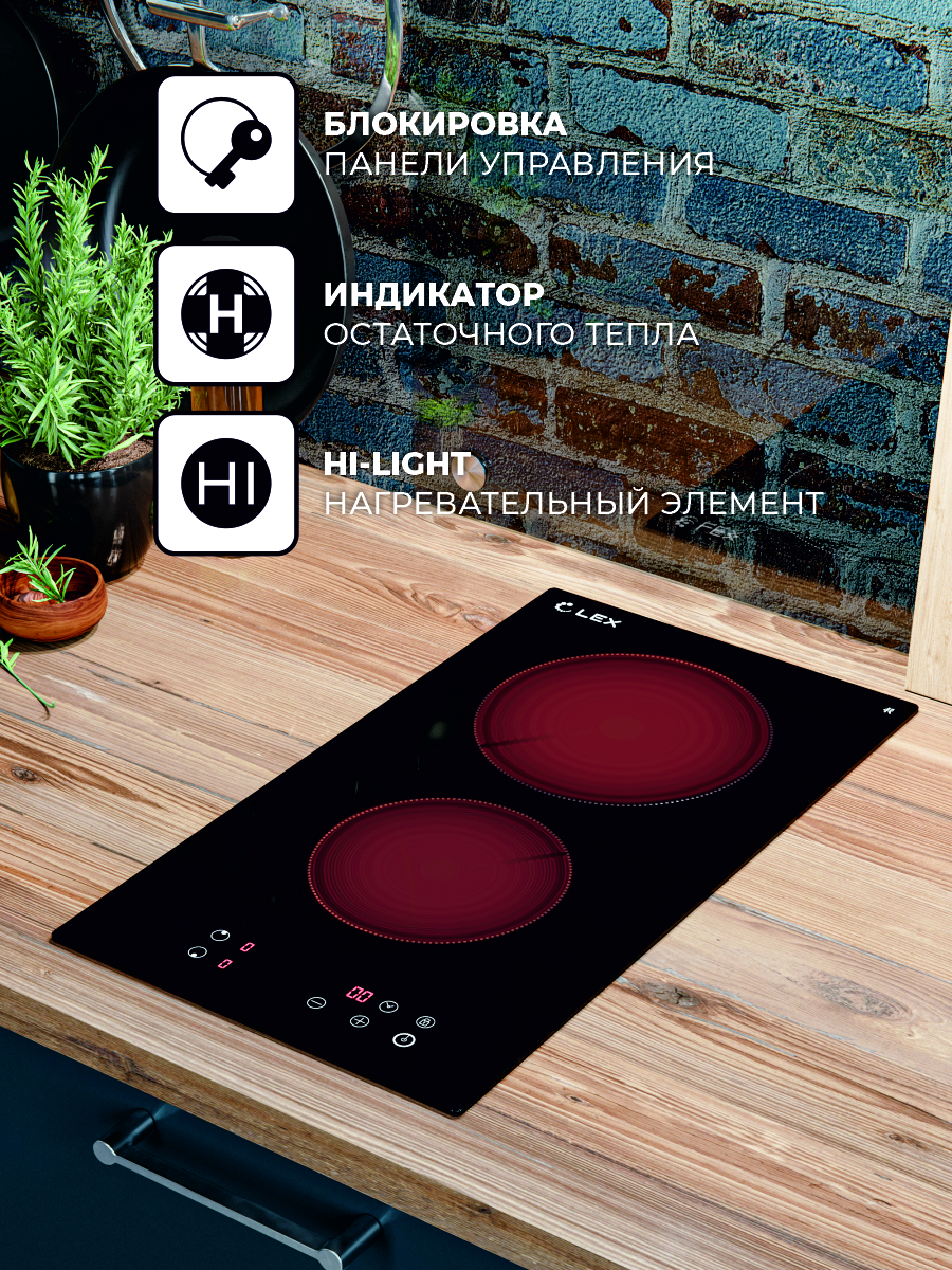 LEX EVH 320B BL Стеклокерамическая поверхность