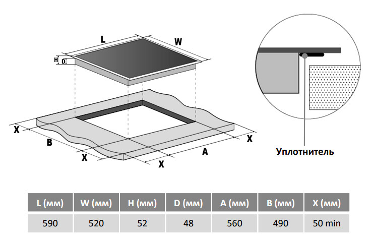 Описаниеповерхность варочная стеклокерамическая независимая, 60 см, черный