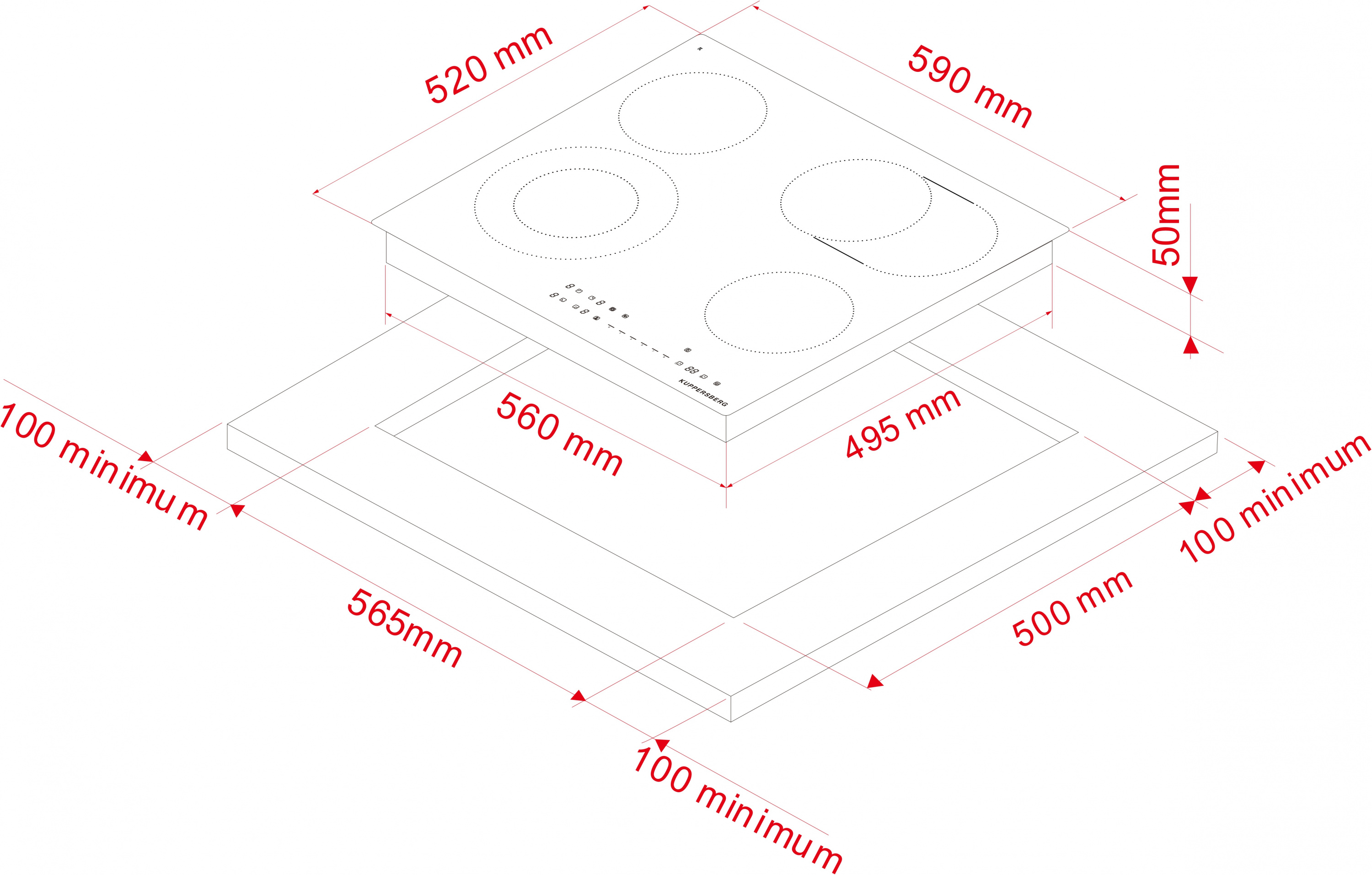 Размер (Высота) 5 см Размер (Глубина) 52 см Размер (Ширина) 59 см Цвет черный Ширина прибора 60 см Переключатели сенсорные Управление сенсорное Таймер есть Защита от детей есть Мощность подключения, Вт 6600 Фурнитура нет Гарантийный срок (месяцы) 24 Страна производитель Китай Ссылка на сайт производителя https://kuppersberg.ru/products/ecs_624/ Всего конфорок 4 Рабочая поверхность стеклокерамика Тип поверхности стеклокерамическая (Hi Light) Встроенная вытяжка нет Расположение панели управления спереди Зона расширения двухконтурная, овальная Дизайн рамки без рамки Размер в упаковке (Высота) 11 см Размер в упаковке (Ширина) 68 см Размер в упаковке (Глубина) 63,5 см Вес прибора 8 кг Размер (Ширина), см 59 Размер (Высота), см (Общие) 5 Размер (Глубина), см 52 - Отзывы
