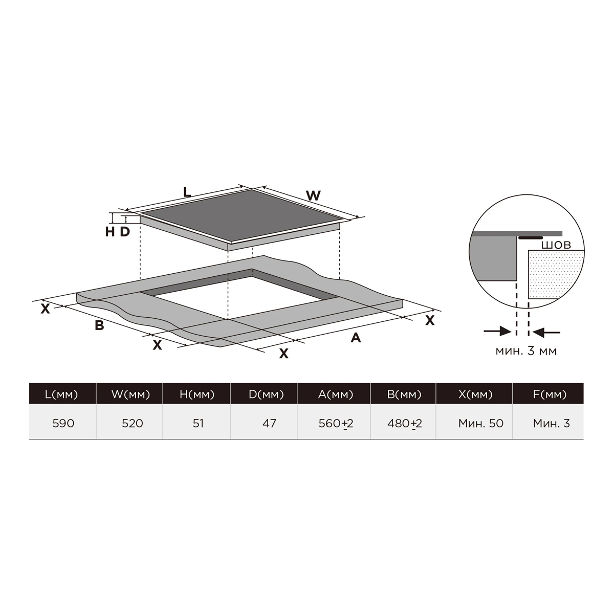 Описаниеповерхность варочная стеклокерамическая независимая, 60 см, черный