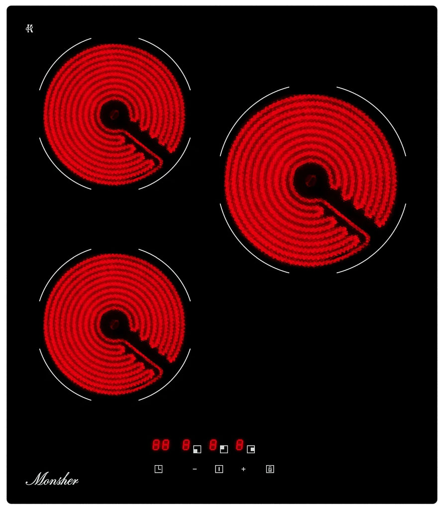 Размер (Высота) 5,2 см Размер (Глубина) 52 см Размер (Ширина) 45 см Цвет черный Ширина прибора 45 см Переключатели сенсорные Управление сенсорное Таймер есть Защита от детей есть Мощность подключения, Вт 4200 Фурнитура нет Гарантийный срок (месяцы) 24 Страна производитель Китай Ссылка на сайт производителя https://monsherrus.ru/products/mhe_43/ Всего конфорок 3 Рабочая поверхность стеклокерамика Тип поверхности стеклокерамическая (Hi Light) Встроенная вытяжка нет Расположение панели управления спереди Зона расширения нет Функция Booster нет Дизайн рамки без рамки Размер в упаковке (Высота) 8,5 см Размер в упаковке (Ширина) 49 см Размер в упаковке (Глубина) 57 см Размер (Ширина), см 45 Размер (Высота), см (Общие) 5,2 Размер (Глубина), см 52 - Отзывы