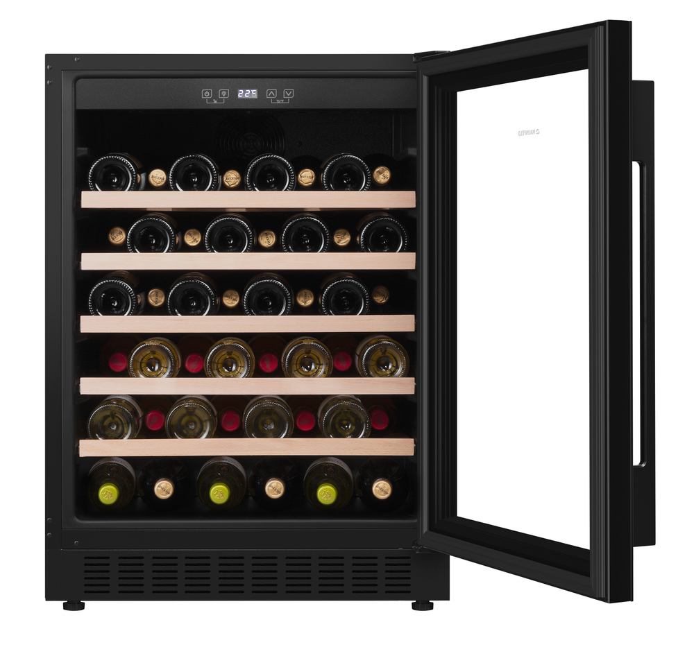 Описаниевинный шкаф встраиваемый, 135 л, 59,5х61,3х82 см, черный