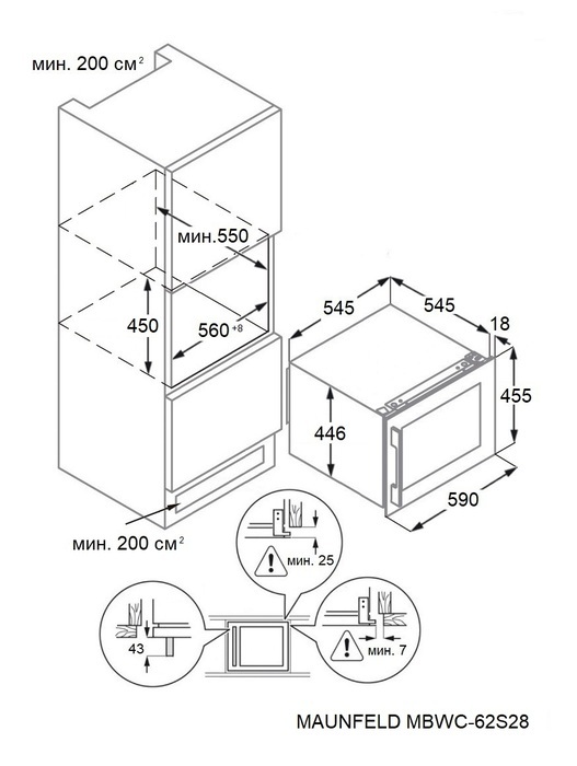 Количество камер 1 Общий объем 62 л Размер (Высота) 45,5 см Размер (Глубина) 54,5 см Размер (Ширина) 59 см Тип установки встраиваемый Цвет черный Управление сенсорное Гарантийный срок (месяцы) 12 Страна производитель Китай Ссылка на сайт производителя https://www.maunfeld.ru/catalog/vstraivaemye-vinnye-shkafy/vinnyy-shkaf-vstraivaemyy-maunfeld-mbwc-62s28 Емкость винного шкафа (в бутылках) 28 Количество температурных зон 1 Размер в упаковке (Высота) 65,5 см Размер в упаковке (Ширина) 65,5 см Размер в упаковке (Глубина) 50,5 см Вес прибора 20 кг Размер (Ширина), см 59 Размер (Высота), см (Общие) 45,5 Размер (Глубина), см 54,5 - Отзывы