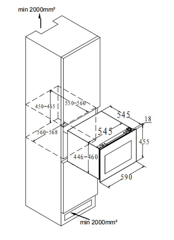 Описаниевинный шкаф встраиваемый, 62 л, 59х56,3х45,5 см, черное стекло