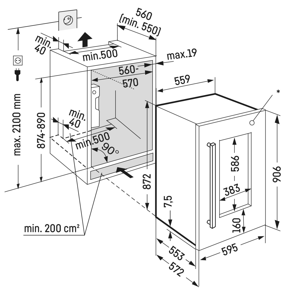 Описаниевинный шкаф встраиваемый, 97 л, класс энергопотребления G, 55,7x55,3x87,2 см, нержавеющая сталь
