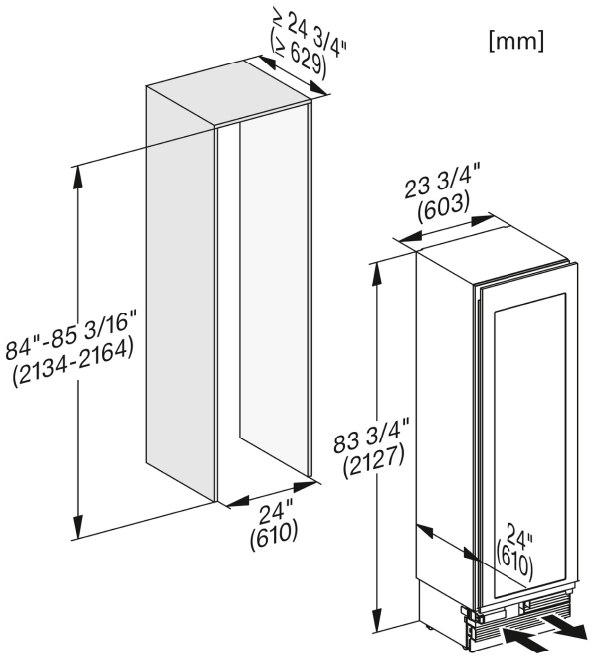Описаниевинный шкаф встраиваемый, 366 л, 60,3х61х212,7 см, белый