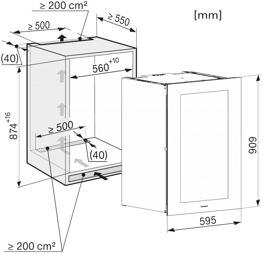 Описаниевинный шкаф встраиваемый, 104 л, 59,5х57,2х90,9 см, графитовый серый, стекло