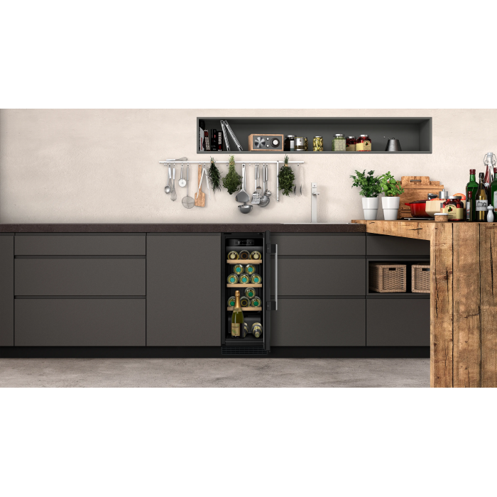 Описаниевинный шкаф встраиваемый, 58 л, 29,8х56,7х81,8 см, черный