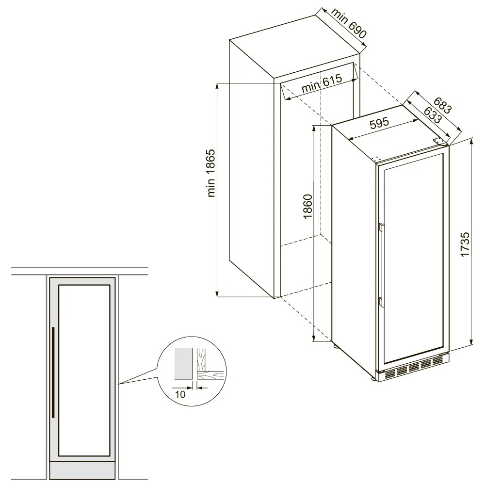 Описаниевинный шкаф встраиваемый, 425,5 л, 59,5х68,3х173,5 см, черный
