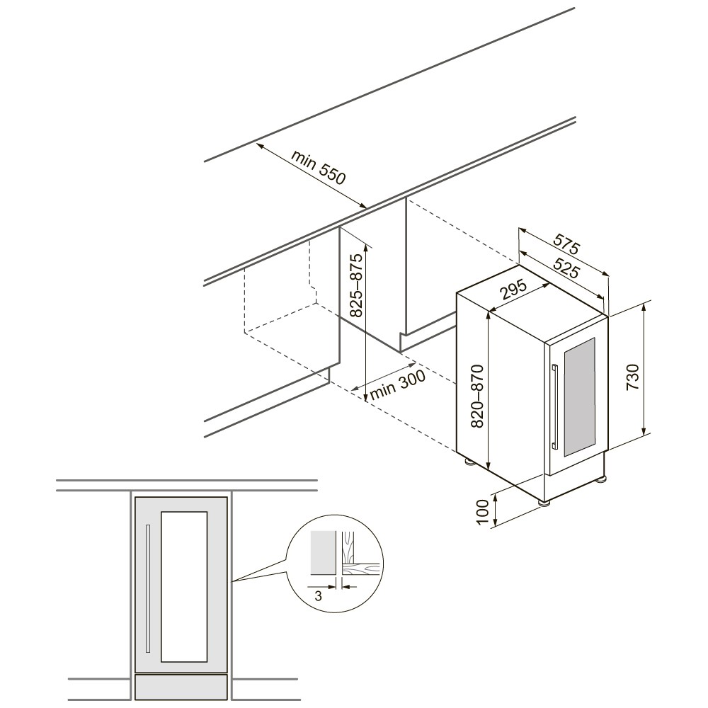 Описаниевинный шкаф встраиваемый, 54 л, 29,5х57,5х82 см, черный