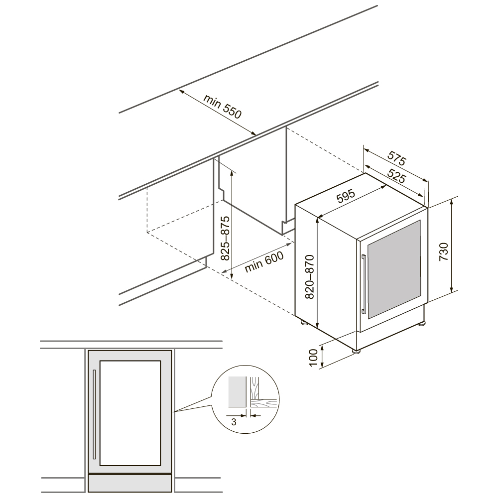 Описаниевинный шкаф встраиваемый, 132 л, 59,5х57,5х82 см, черный