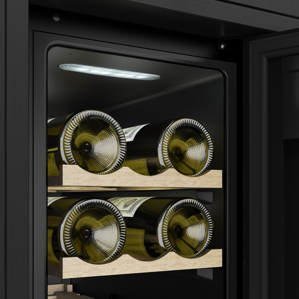 Описаниевинный шкаф встраиваемый, 56 л, 29,5х57х82 см, черный