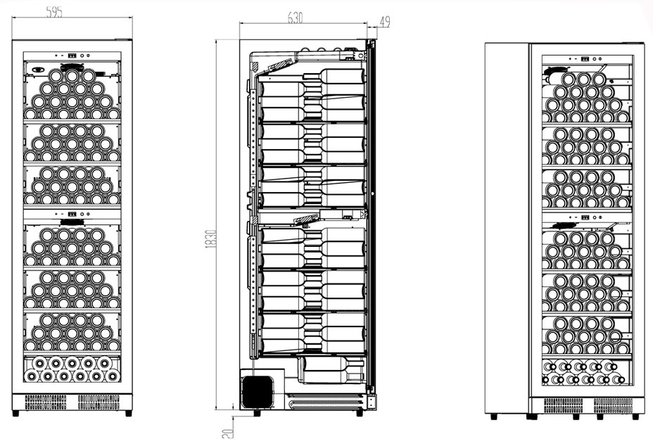 Описаниевинный шкаф встраиваемый, 380 л, 59,5x74x186 см, черный