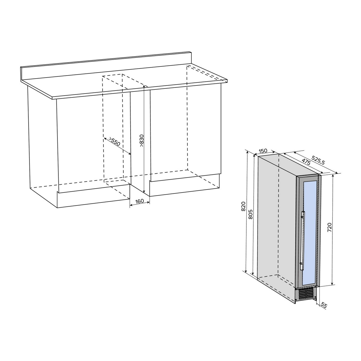 Описаниевинный шкаф встраиваемый, 22 л, 15х52,5х82 см, черный