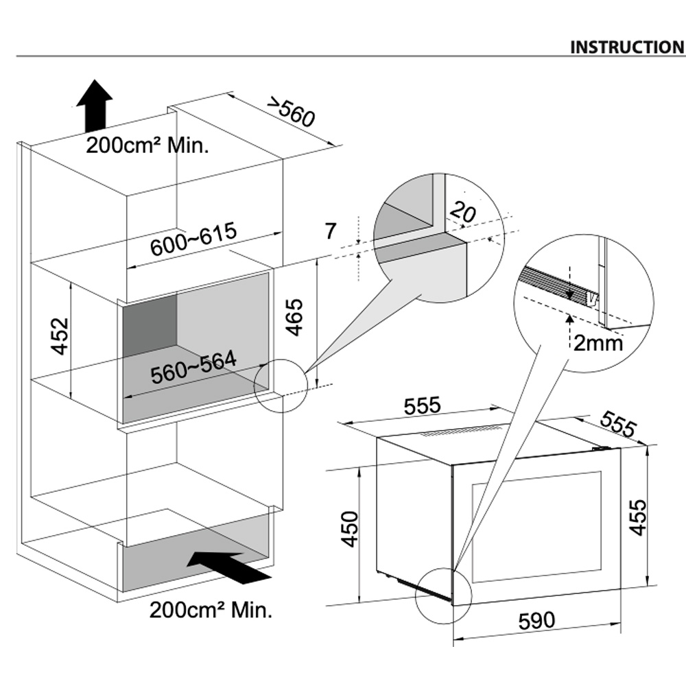 Описаниевинный шкаф встраиваемый, 51 л, 59х55,5х45,5 см, нержавеющая сталь