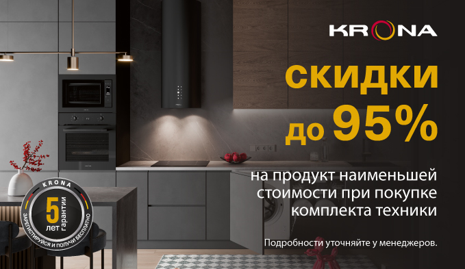 Совместно с брендом «Krona» объявляем акцию " Скидка до 95 % на единицу техники в комплекте ". Воспользуйтесь уникальной возможностью выгодно приобрести комплект техники KRONA.